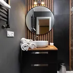 Samostatná toaleta a sprcha zásobují koupelnu.